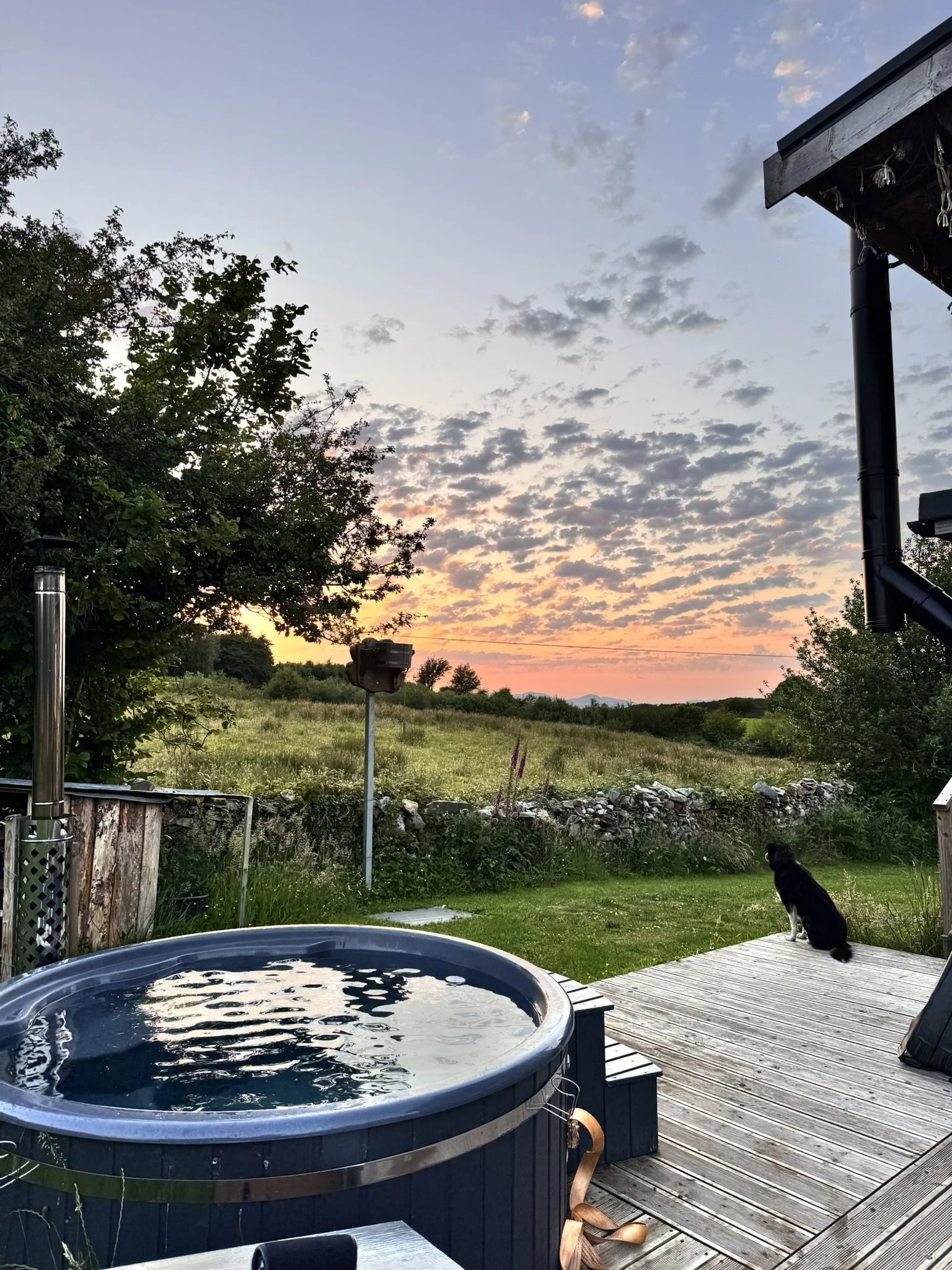 Steeped in nature, with complete privacy and stunning valley views, Éalú Escape is the perfect couple’s hideaway. Surrounded by lush meadows and woodland, relax and unwind on the beautiful Wild Atlantic Way, take time to feed the chickens and enjoy a visit from our friendly dog Bella and cat Poppy.